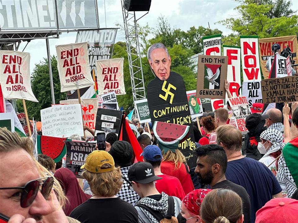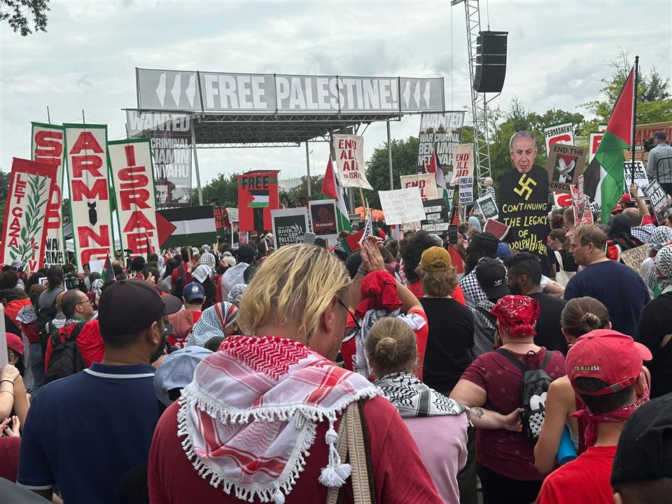 Muchos de los presentes, con la tradicional Kufiya, viajaron no solo de diferentes puntos de la capital, sino también desde Nueva York, Michigan o California para expresar su oposición a la presencia de Netanyahu, quien llegó el lunes a Washington DC.