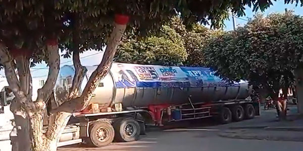 Video publicado por Caracol Radio y replicado por el presidente Gustavo Petro, en el que se observa un carrotanque que reparte agua con propaganda electoral de congresistas en Aguachica, Cesar.​