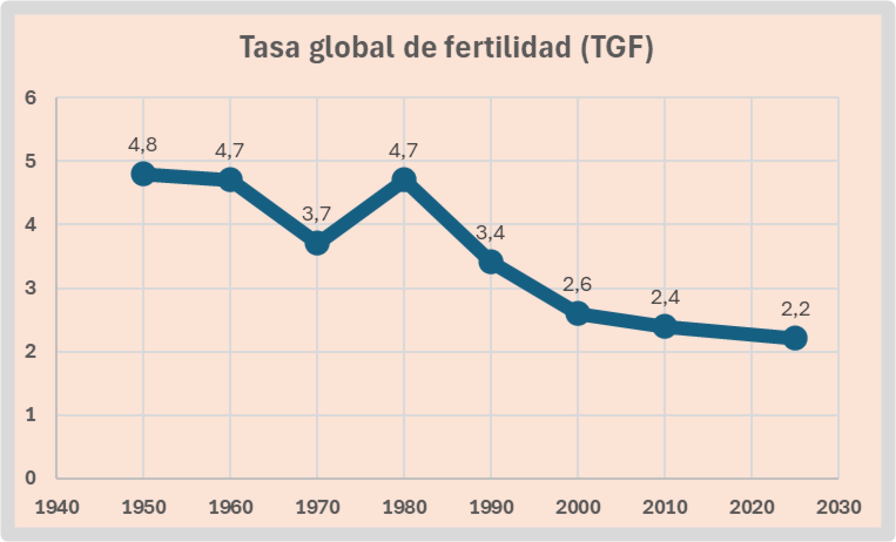 De altos índices de natalidad y fertilidad en el siglo XX, la población hace tránsito hacia tasas más bajas y controladas. Dificultades económicas y otra mirada del futuro de los jóvenes entre las causas